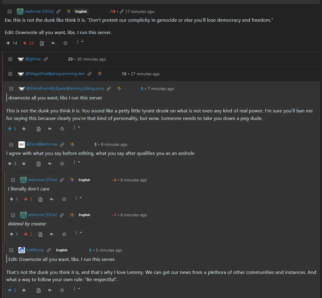 What’s weird is I have definitely been very liberal over there, I am somewhat active in !iowa@midwest.social and have never seen anything. Do the admins just have one snowflake mod?