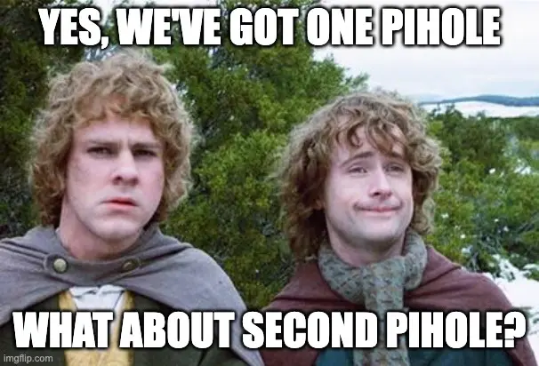minus-squareOnions Sliced Thin@lemmy.worldOPlinkfedilinkEnglisharrow-up20arrow-down1·22 days ago I have a “main” Pihole on a Raspberry Pi, and I set up another instance in a VM for secondary functions.