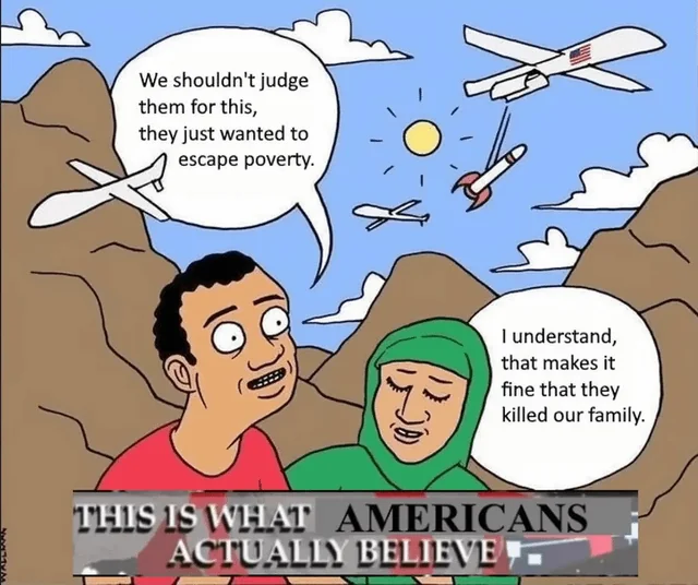 You’re evidently okay with the atrocities being committed. You excuse the inflicting of suffering and devastation on non Americans for a selfish benefitting of the soldiers committing and abetting them directly, and moreover to the benefit of scumbag elites who are incentivized to continue perpetrating acts of aggression, crimes, and atrocities, placing profits over people as always.