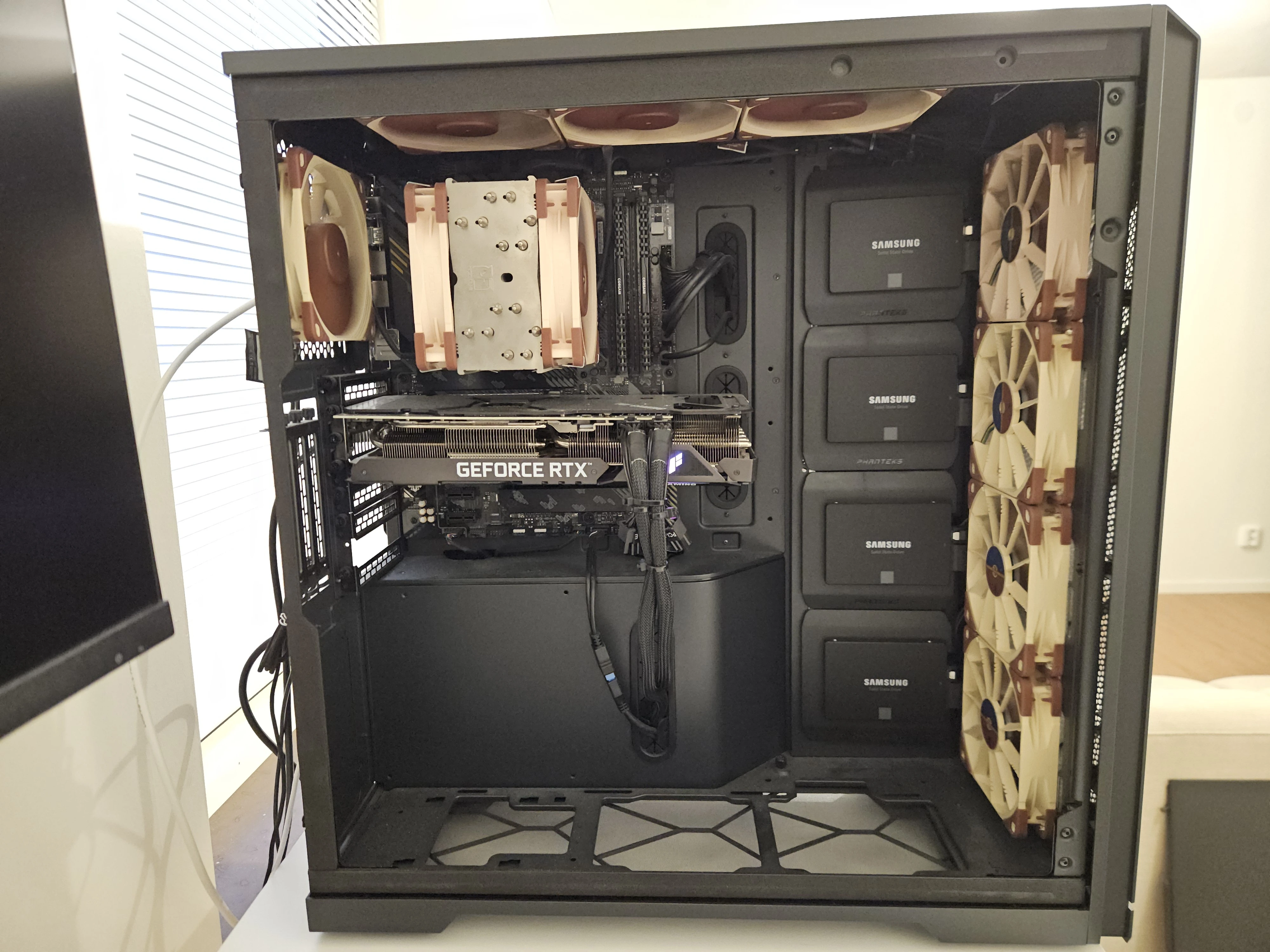 Oh, and the software part: 4 x 4TB drives made into one 16TB logical volume with LVM, on top off which there is a LUKS container for whenever my home is raided (not that encryption helps legally speaking, unless you have plausible deniability…). I figured I don’t need redundancy with SSDs and none of the data is really anything that I couldn’t just torrent again. Maybe I’ll do an offline backup of them down the road.