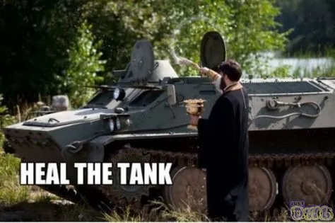 This came from Age of Empires, where priests could heal units by shaking incense/holy water over them, including ones that didn’t make sense like trebuchets or seige rams.