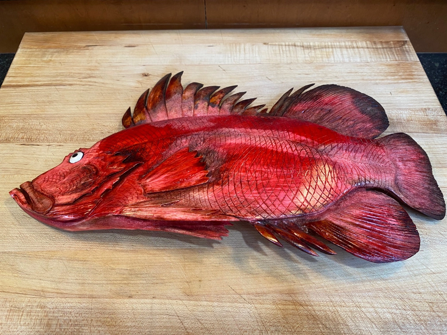 This fish was hand carved out of a moose antler. I saw it in a store in Anchorage when I was there for a friend’s wedding. It was the first original art I ever bought and was pretty expensive at the time.