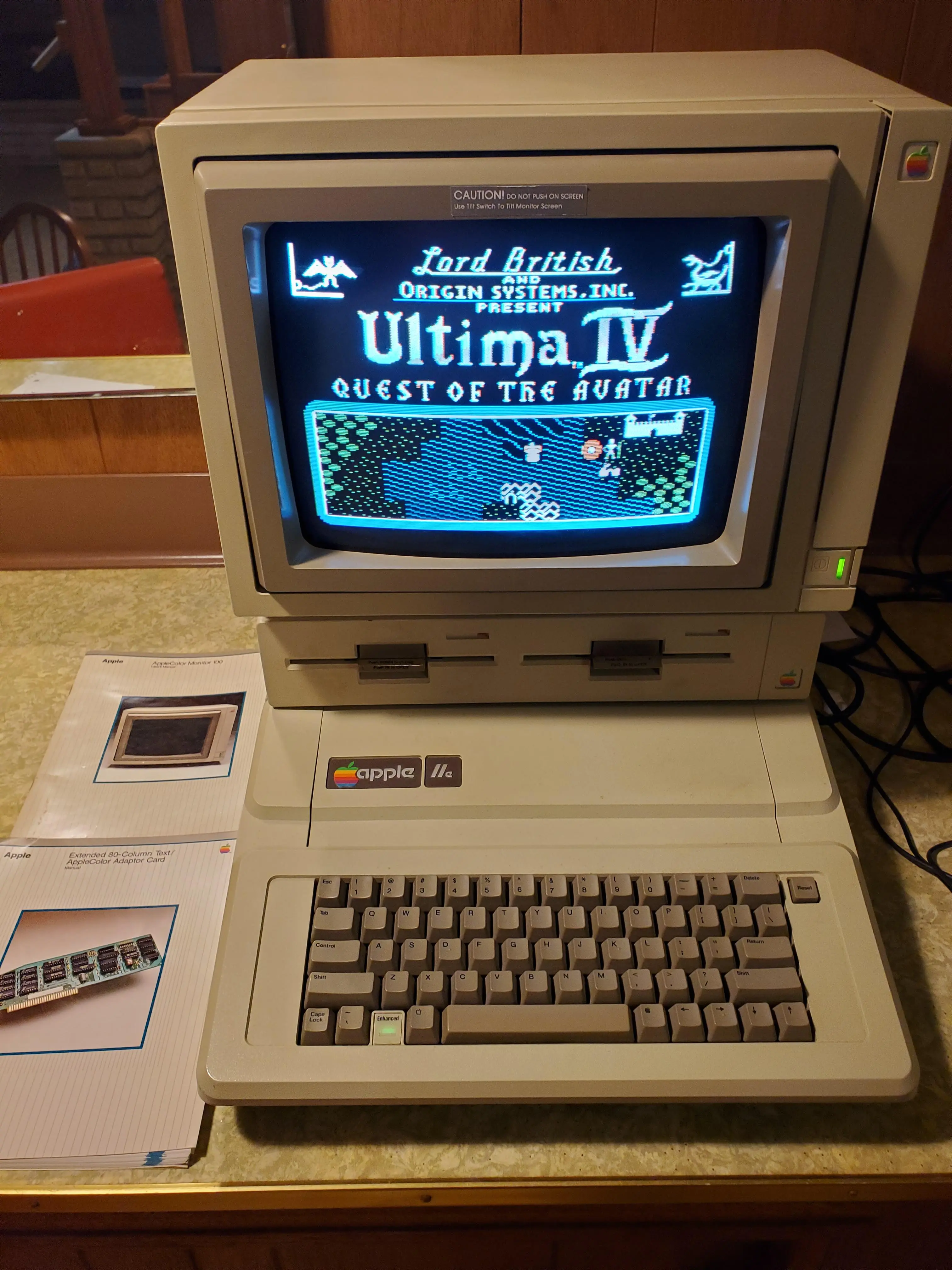 Close to that one, an Apple IIe with a color monitor! (pic not mine) Apparently the color monitor was rare? Explains why most pictures I’ve found have the green and black one.